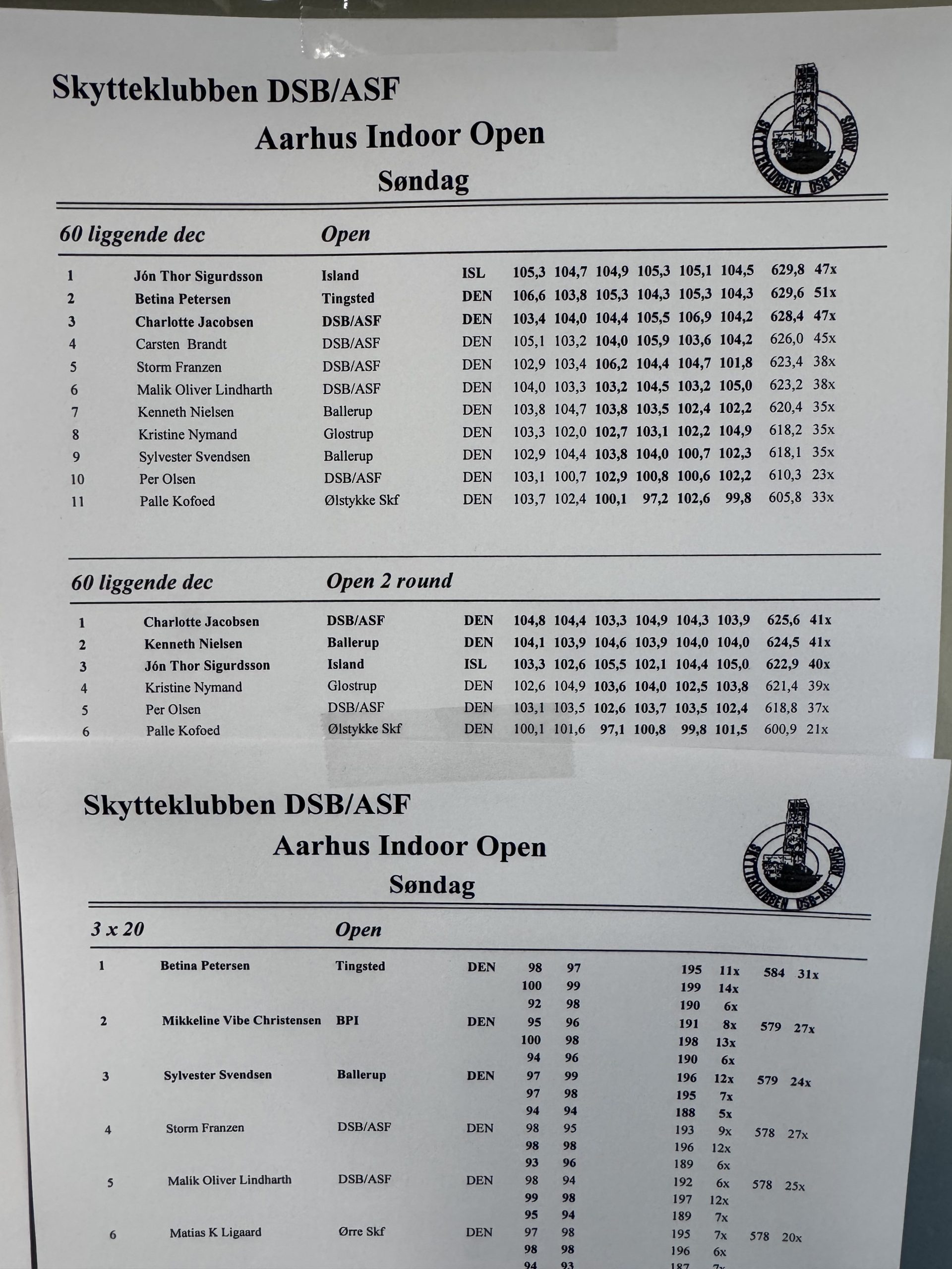 Jón Þór Sigurðsson var að bæta eigið Íslandsmet í riffilkeppninni 50m liggjandi á Opna innanhússmótinu í Aarhus í Danmörku, með frábæru skori 629,8 stig. X-tíurnar voru 47 og eins var skorið 600 samkvæmt gamla kerfinu. [...]